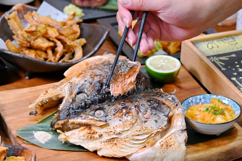上一次吃烤鮭魚頭是在東京的磯丸水產,想不到虎川千代這邊也點得到(只是建議要先預訂),漁港新鮮直送,這個鮭魚頭的大小比較親切一點,不要被它外觀嚇到,魚肉還挺多的又肥厚,完全不用擔心要怎麼吃,
