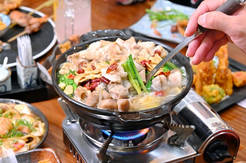 「日式牛肥腸鍋」算是日本福岡的在地名產,不過在日本各地居酒屋很多都吃得到,我自己當初是在名古屋一吃成主顧,虎川這鍋有超滿肥腸,我自己目測應該比我在日本吃過的任何一鍋都還多,誠意滿滿,還有好多韭菜跟蒜酥,醬油湯底雖然感覺不太有殺傷力,但其實相當夠味有辣勁,而且能免費續湯,每次加的都是原湯維持一樣的口味跟濃度,不過鹹度我覺得有比日本的低一些更順口。