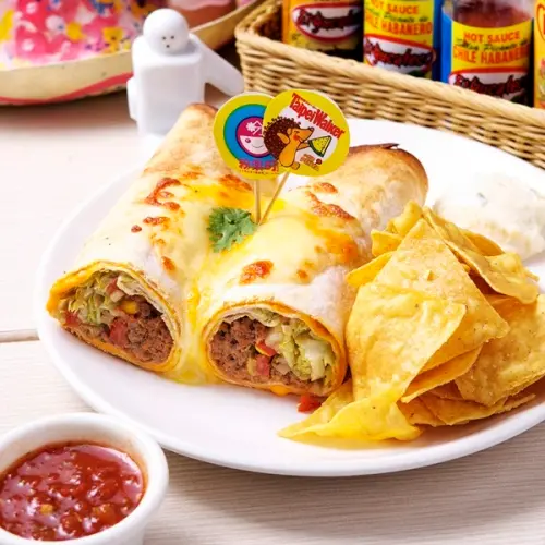 墨西哥餅皮裡夾了炒蛋、乳酪、豬肉漢堡排,飽足感還不錯~