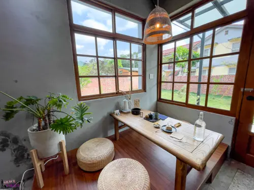 店內是有點像小型四合院的感覺,在韓綜中也有看過這種傳統的戶型,但是四周都換成落地窗,所以看起來清透又明亮,靠近窗邊也可以遠眺三清洞
