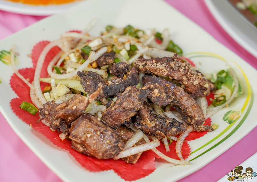 好吃推薦黑鮪魚肋排,使用椒鹽烹飪、爆香帶出洋蔥清甜