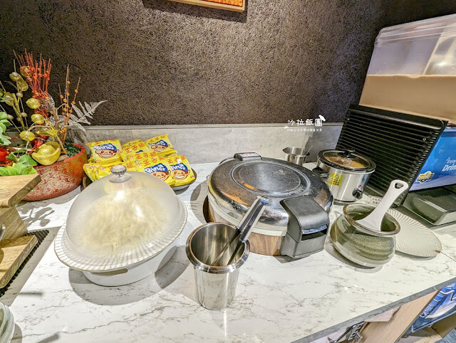 『老沐涮涮屋』自助取餐區,提供北海道奶茶、日式煎茶