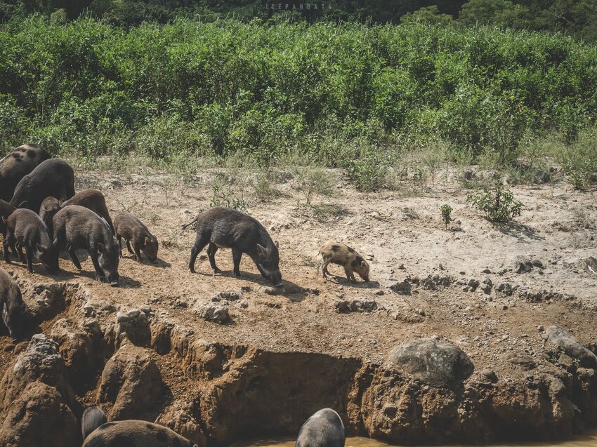 來到曾文水庫風景區一定要搭乘一次觀光遊艇,若有幸遇見水位高漲就能順道前去探訪飛鷹峽谷及山豬島,雖然山豬生性較為殘暴一些,但隔著一段距離也能清楚看見牠們的身影,尤其最有趣的是每當有遊艇靠近就會播放音樂聲,告訴牠們遊(食)客(物)來了,過沒幾分鐘就會看見成群結隊、跋山涉水而來的野山豬們捲起一陣風沙到遊客的面前來。