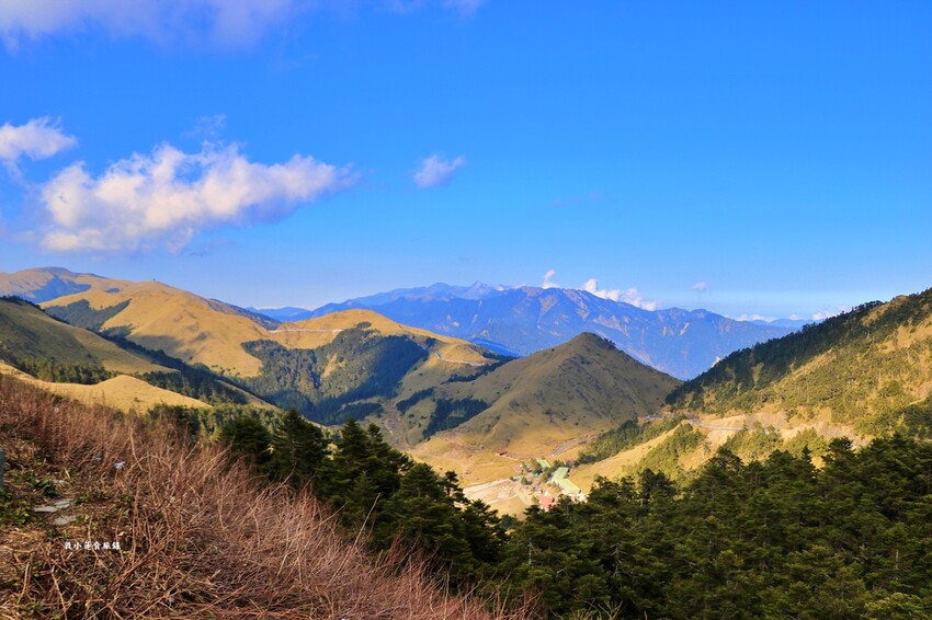有看到遠方中有個紅點嗎?如果我沒看錯的話那應該是靠近松雪樓那裡的合歡山國家公園立牌