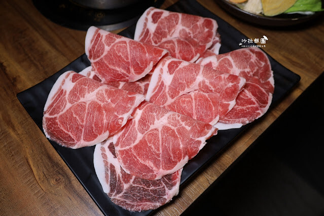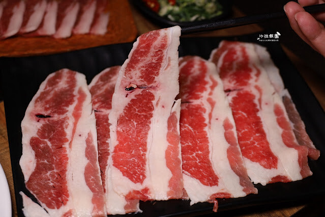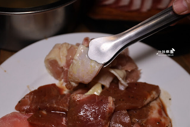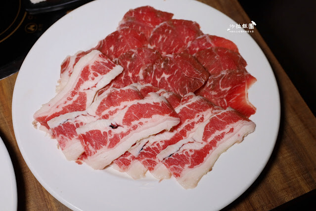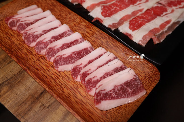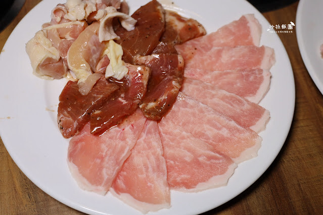 一開始先幫我們上基本盤,黑盤子是火鍋肉片,白色盤子是燒烤肉片,有不吃的點餐時請先告知
