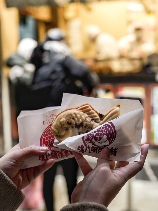 吃完章魚燒要繼續前往晚餐地點前進的時候巧遇另一大阪有名的小點心鳴門鯛魚燒,就算等等要吃正餐了還是想嚐嚐