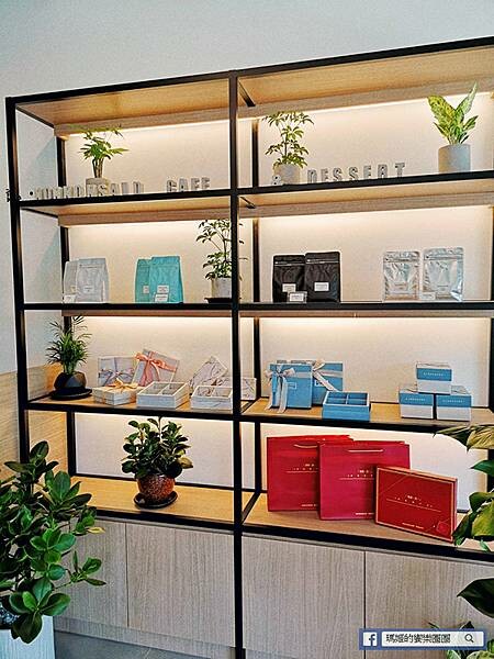 這個空間擺放了店內專屬的禮盒和商品,喜歡他們家的甜點可內用外,也可以外帶。