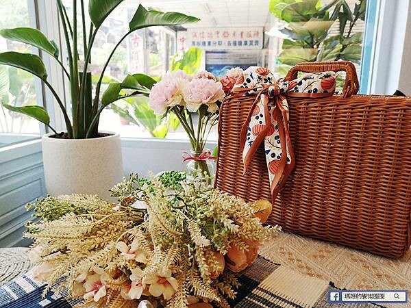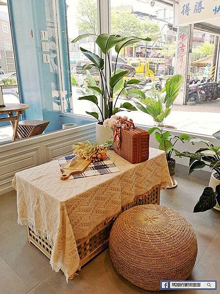 門口這角落瑪姬愛慘了!低低的木桌舖上一條花紋桌巾,上滿擺了一只藤編行李箱和乾燥花,這佈置讓人有種來國外渡假的fu~和姐妹淘喝下午茶坐在這裡,會是手機拍不停的狀況,瑪姬光在這裡就拍了好多張美照,快變成攝影棚了。