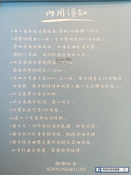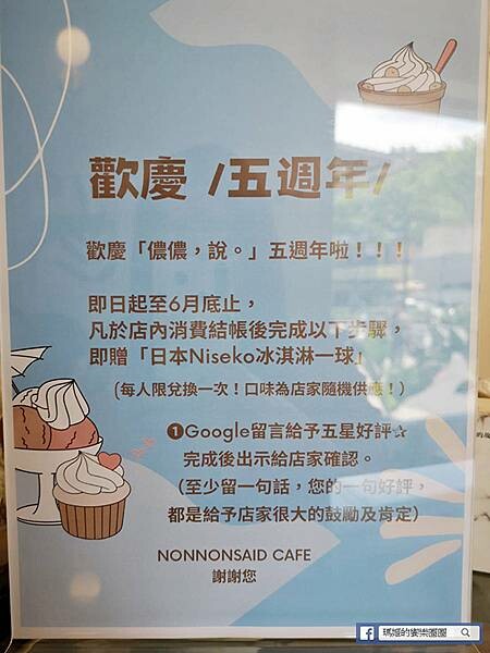 官方臉書:Nonnonsaid Cafe 儂儂,說。甜點專門店(內有菜單)