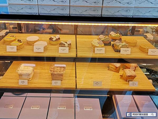 甜點櫃裡都是闆娘每日現做的手工甜點,主要以塔類和生乳捲盒為主,因為是手工限量,客人訂位內用或外帶時避免向隅,可以在當日早上十點先打電話預定。