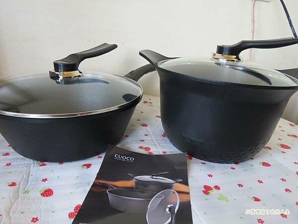 家裡有多組CUOCO的廚房用具,像是不沾平底鍋、炒鍋...以及料理配件等,