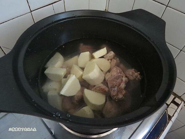 3.將排骨、山藥先放入鍋中,倒入適量清水~