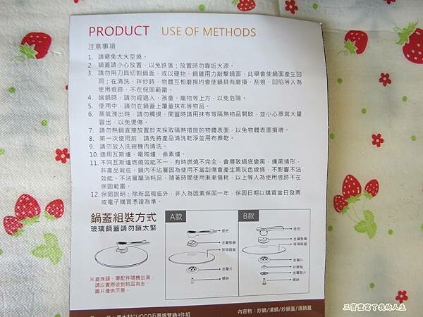 這麼棒的不沾鍋具組,使用上也請小心,說明書上有使用及清洗方法說明~