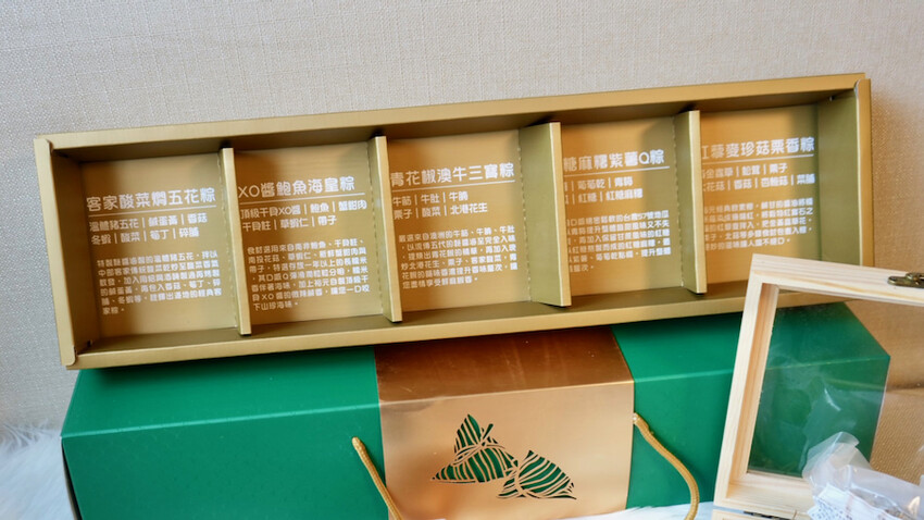 我非常喜歡購買飯店推出的禮盒,總是很注重包裝,外觀非常美,很適合送禮。這次裕元花園酒店選用端午節應景的綠色底為主色調,上面有一個粽子圖案的金色紙雕,質感非常好,推薦有送禮需求的人,送客戶、長輩都是不錯的選擇。