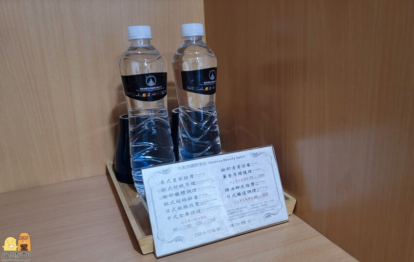 備品的部分是有提供兩瓶礦泉水,也沒有提供任何小點心,兩條大毛巾、兩個牙刷就沒咧