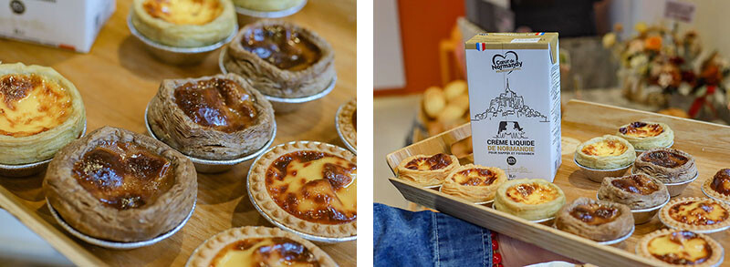 蛋塔用的法國奶油加上全蛋黃而且不加布丁粉!這麼搞剛難怪口感相當好~