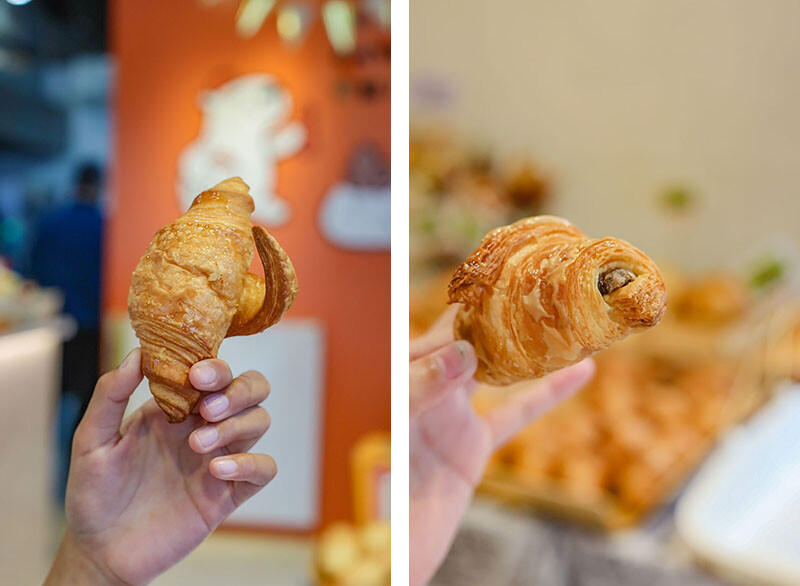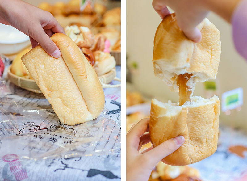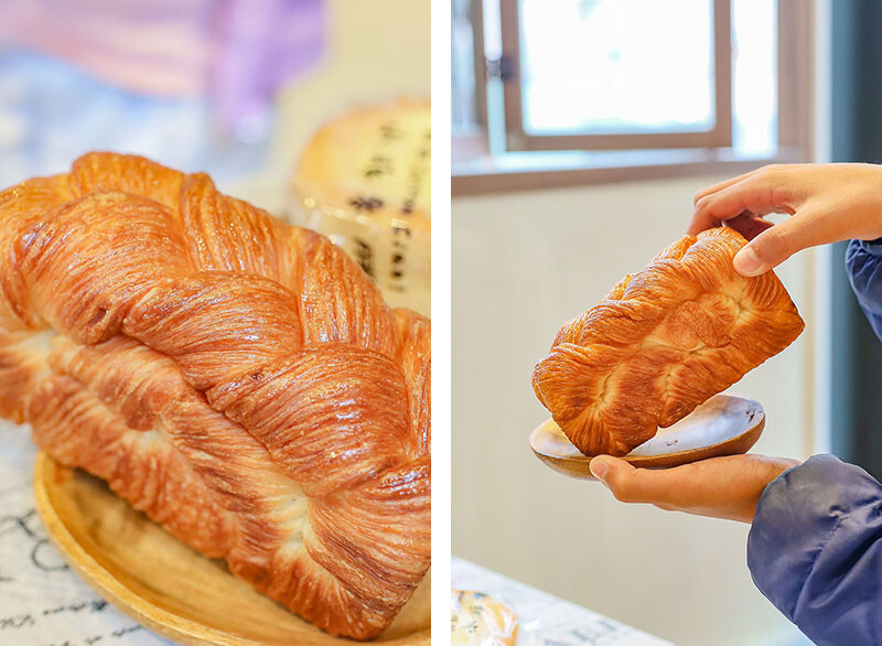縮小版的吐司超可愛,韓國峰巢小吐司有著綿細的纖維質感加上內餡有如麻糬般的蜂蜜內餡,光是撕開就能牽絲~加熱一下還會讓蜂蜜融入吐司麵包裡喔!另一款是丹麥吐司,有著少女的麻花辮,外層一點酥脆有著閃耀光感,稍稍咀嚼就能有香香甜甜口感。