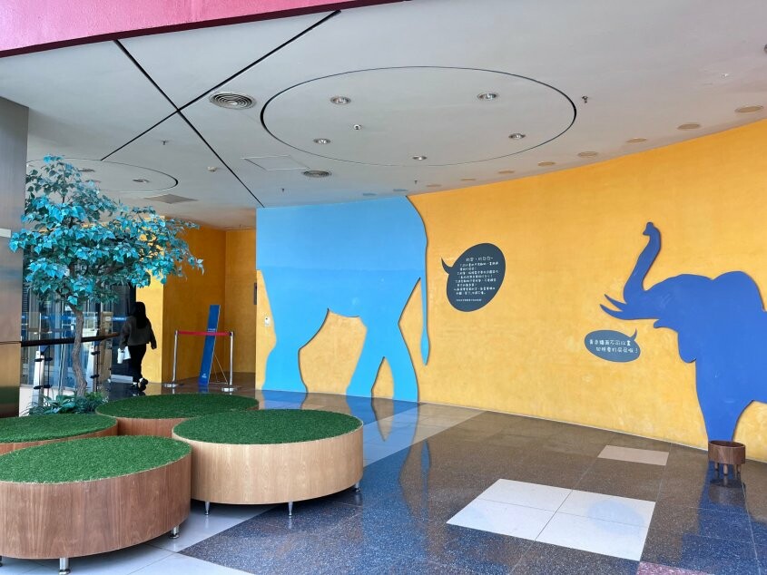 逛街腳酸可以來五樓彩繪牆休息放空一下~可愛的動物牆面可以用粉筆彩繪喔!很適合帶小來來放電~