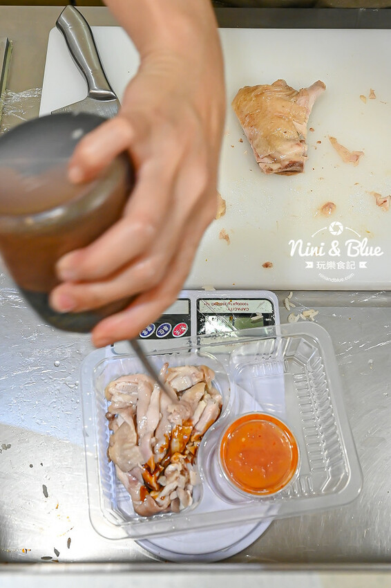 加入大量蔥薑等辛香料費時熬煮的去骨雞腿肉會標準秤重讓每一份餐點肉量都一樣,最後再淋上特調海南雞醬汁,鹹甜醬香讓雞腿肉更加有滋味~