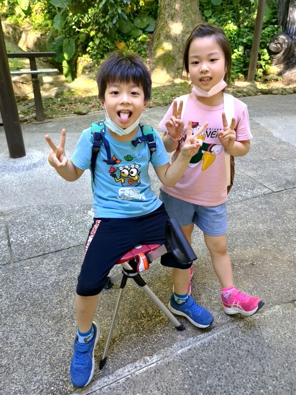 ▼小朋友走累了吵著要坐著休息一下,剛好附近沒有椅子,就打開隨身椅讓他們坐一下~~不過16歲以下的孩童使用隨身椅時,建議還是要有大人在旁留意以策安全唷!