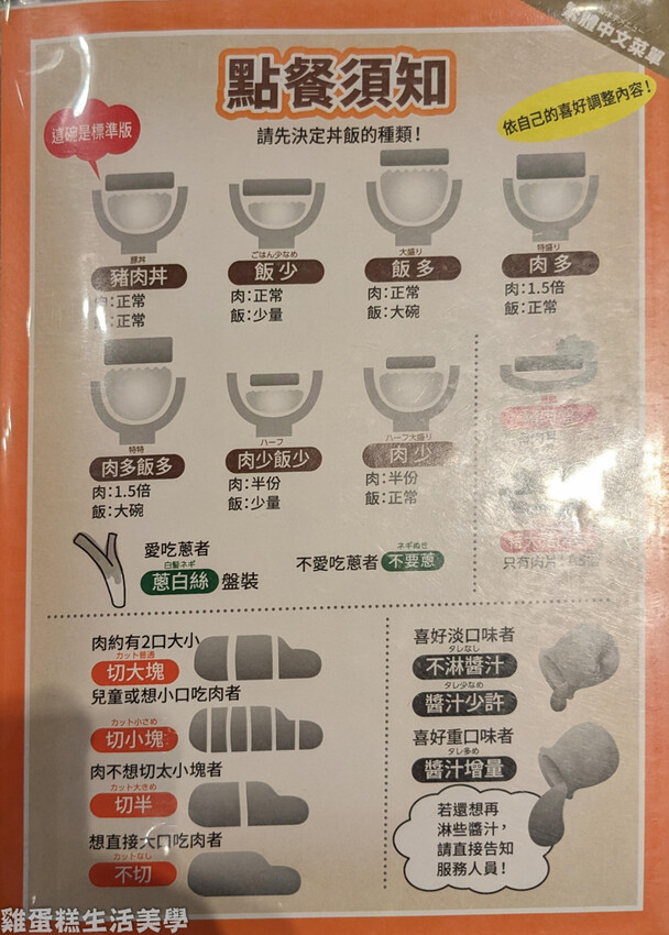 ▲十勝豚丼菜單:丼飯的飯量、肉量都可選擇客製化,可依自己的喜好調整真的很貼心。