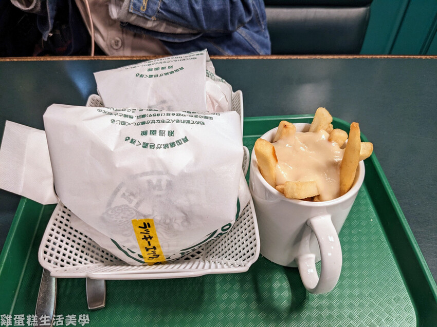 雞蛋糕短評:來到函館必吃的美食之一,漢堡內的雞肉細嫩多汁,醬汁也很夠味不死鹹,薯條也很酥,沾著起司和紅醬食用。