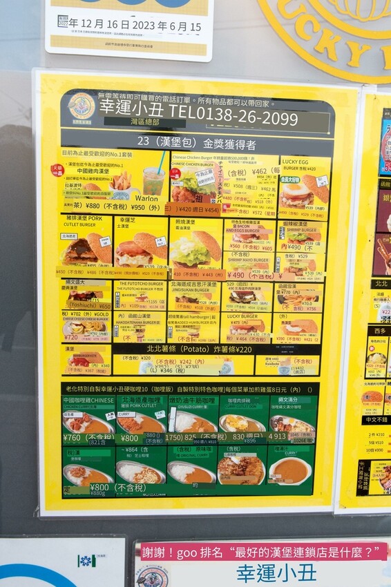 ▲幸運小丑漢堡菜單:菜單只有日文版本,我特地翻譯給大家看,最熱銷的中華雞腿堡套餐880日圓,外帶950日圓比較貴些。