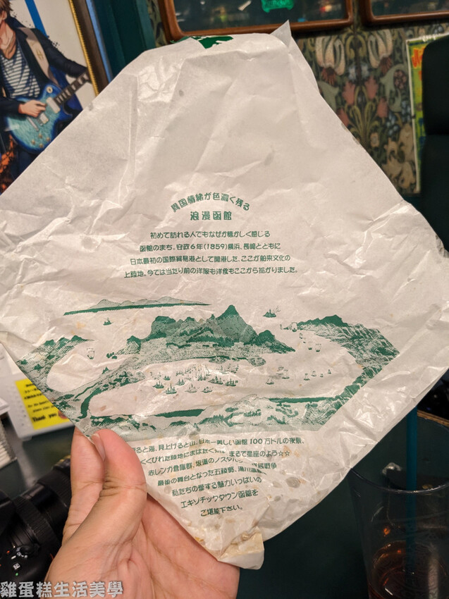 ▲漢堡紙袋上畫著函館港的古地圖,還有簡單的介紹。