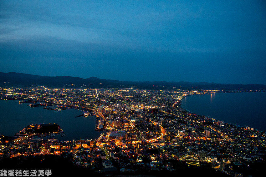 ▲我們從傍晚待到天黑,可以欣賞函館不同的景色,這個景觀台這我們這幾天看夜景觀光客最多的,要找到空檔將鏡頭伸出去拍照非常不容易。