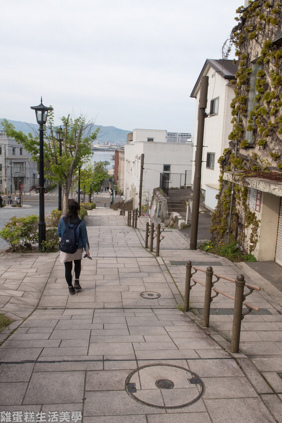 ▲八幡坂最美的風景就是這些斜坡,盡頭就是港口大海,只是今天有點陰拍起來不夠好看。(看到這個斜坡,超想拿滑板車從這裡溜下去)