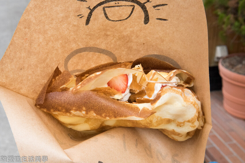 ▲草莓可麗餅 800日圓,一份800日圓不便宜,可麗餅很特別的地方是外面的餅皮是軟的,咬到裡面才吃到脆脆的口感,很有層次感。裡面有滿滿的鮮奶油,鮮奶油吃起來完全沒有油膩感,配上多汁鮮甜的草莓,真的好吃!