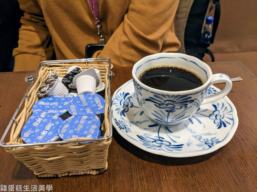 ▲加購的熱咖啡 290日圓,咖啡附了一整籃奶油球和糖漿,可隨自己喜愛添加,咖啡我沒喝就無法評論了。