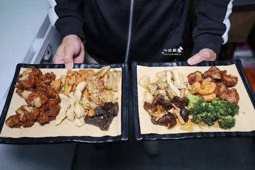 香菇跟杏鮑菇都非常多汁,再搭配灑上的椒鹽跟秘醬