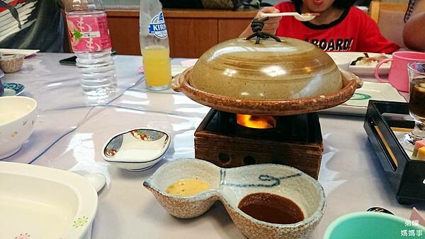 我們這桌都是由這位人員為我們服務(好像有個專有名稱,抱歉弟噗媽忘記了...),連打開陶鍋鍋蓋也是