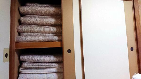 睡覺的棉被和床,就像卡通多拉a夢一樣放在櫥櫃內。記得,不要假會自己拿出來舖喔!