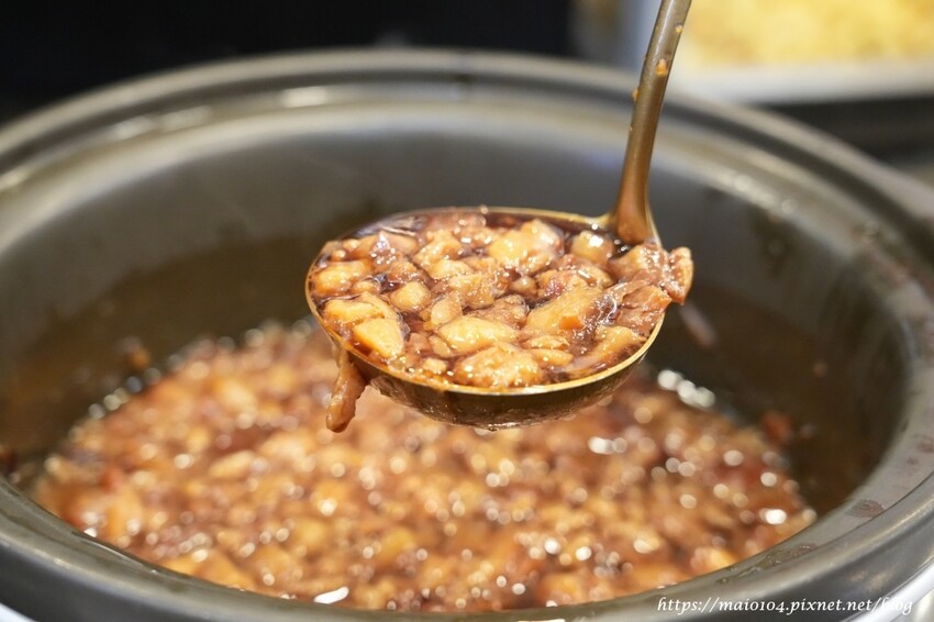 使用五花肉條燉煮的肉燥有著鹹甜風味及豐富的膠質,香氣十足