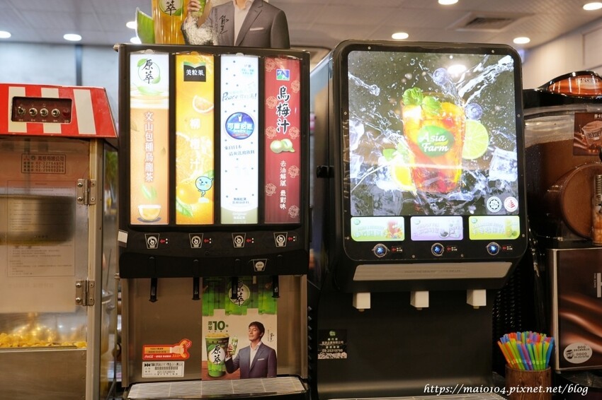 此區有碳酸飲料、茶飲、果汁、冰沙、爆米花等等