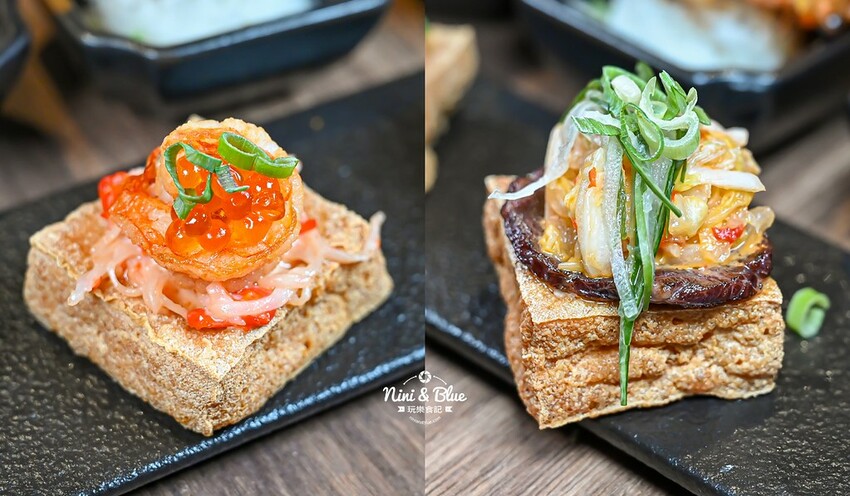 明太子蟹肉鮮蝦臭豆腐、炙燒和牛山葵臭豆腐