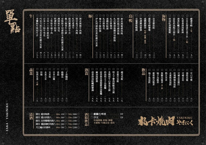 札卡燒肉漢口店 餐點介紹