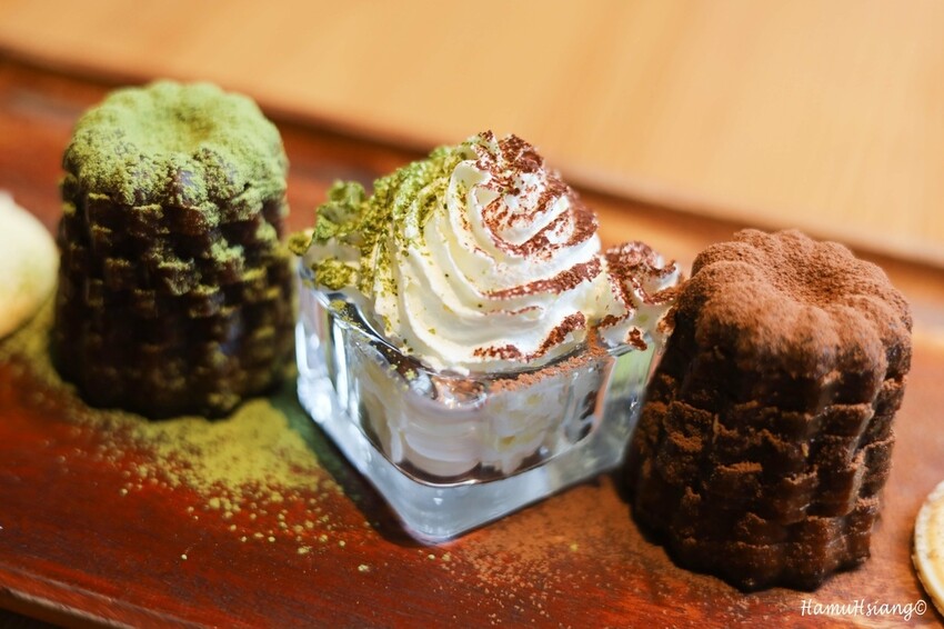 我們點兩個,店家還特地加了抹茶粉和可可粉,讓我們可以轉換口味吃,這個就是螞蟻人會愛的飯後甜點啦!!