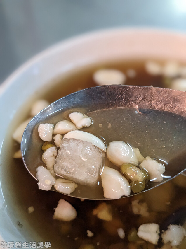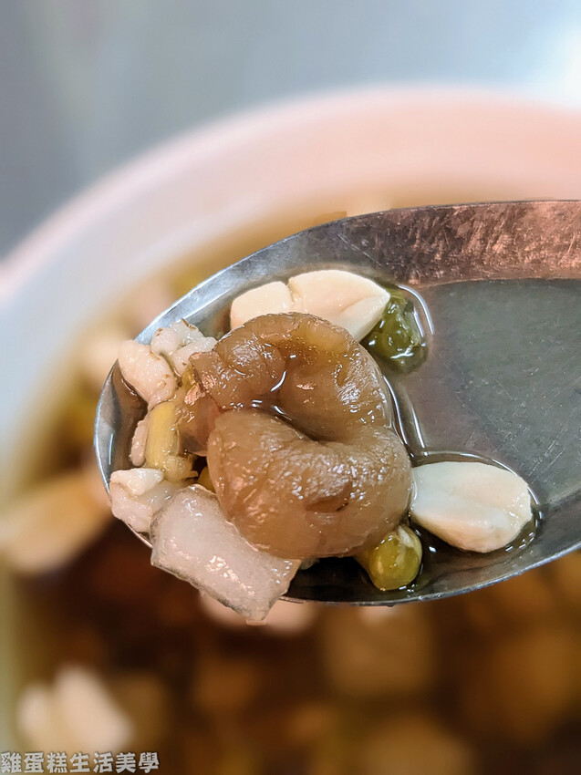 ▲紅豆花生等配料煮得很軟爛,粉角吃起來有Q度,甜湯因為有加了桂圓的關係喝起來有微甜感,甜度剛剛好不會死甜。