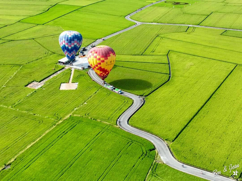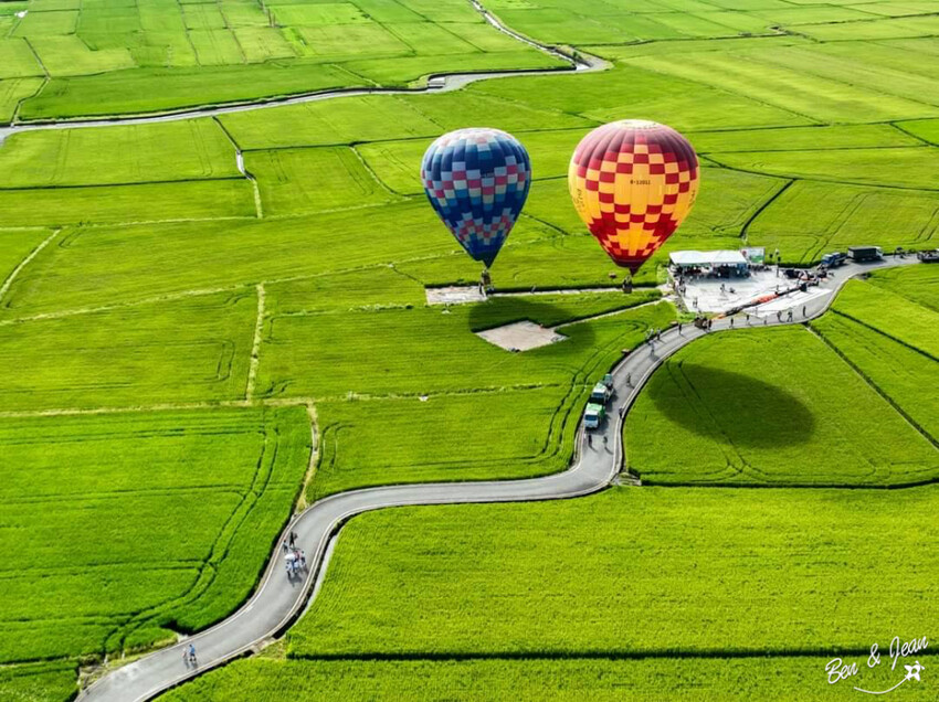 黃金稻田裡的熱氣球,只有在三奇美徑看的到喔~