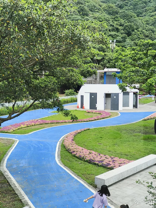 馬上右轉,沿著藍色PU 路面轉進來就對了