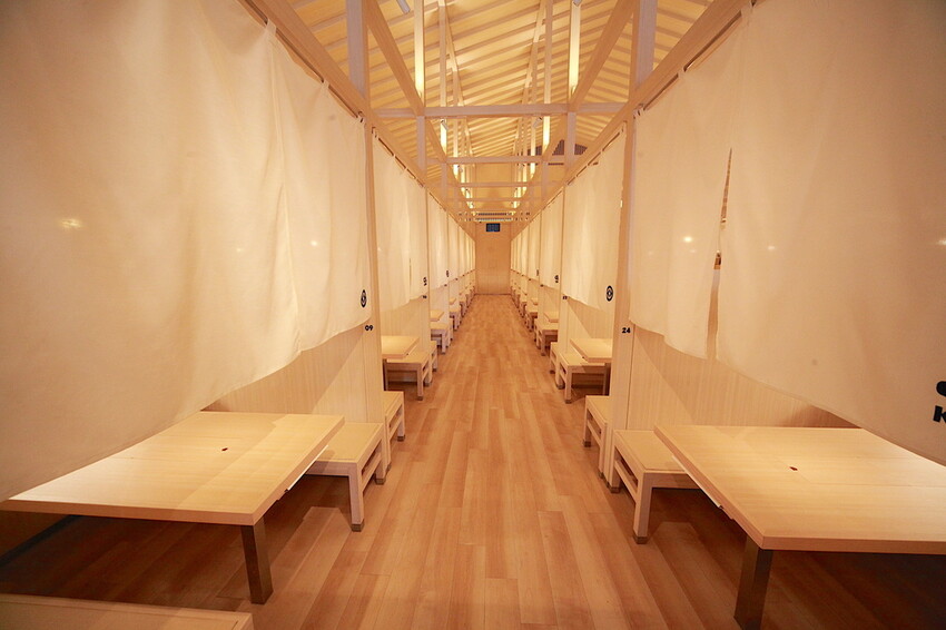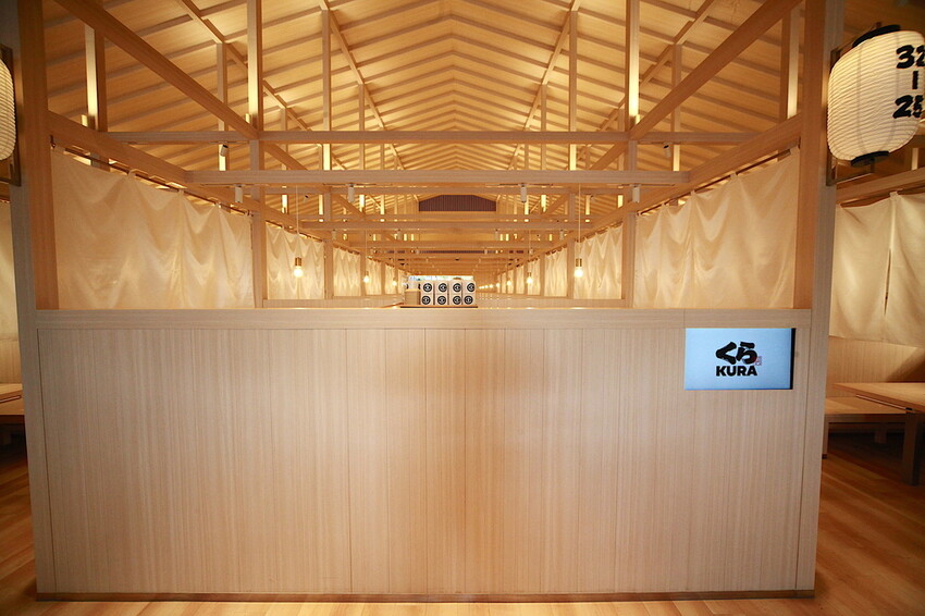 官方網站有寫是總共有288位子,座位區以淺色系木質來裝潢,座位都有使用低矮隔板來區隔,搭配日本簾幕座位富有隱私性。