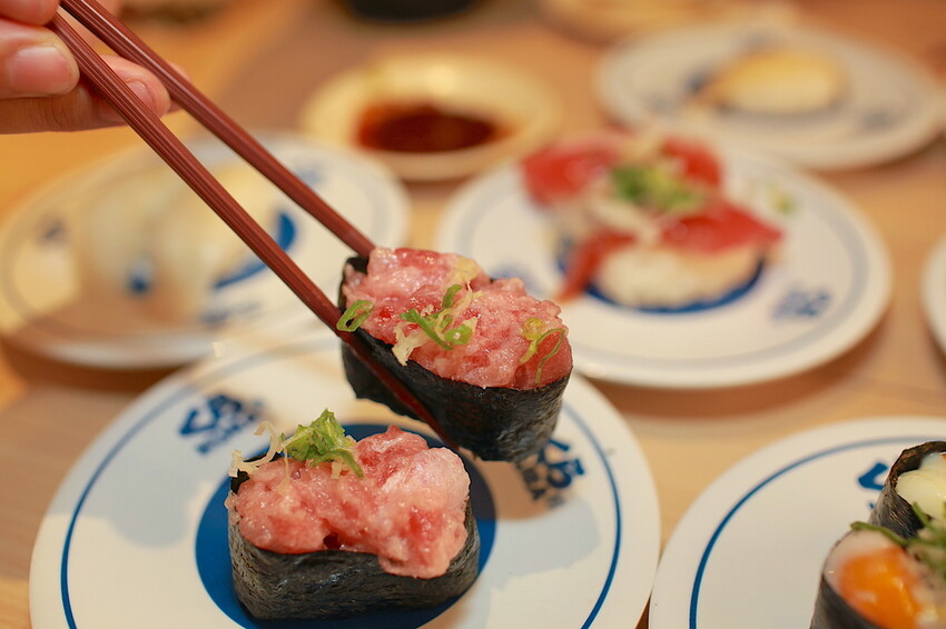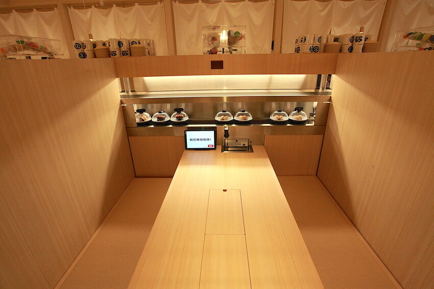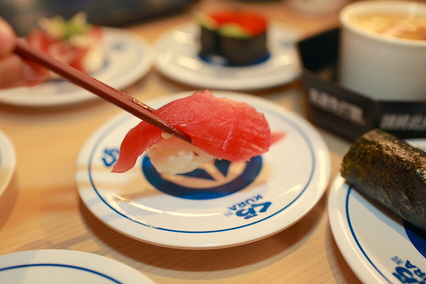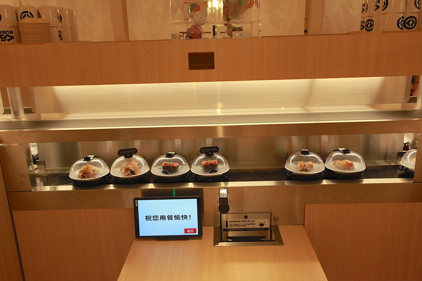 這個是藏壽司的壽司置盤器具,壽司都有用透明蓋子罩起來較為乾淨,裡面有一盤計40元與兩盤計80元的餐點。