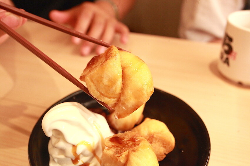 這豆乳做成冰淇淋比較爽口些,甜甜圈油炸過比較偏酥脆不膩口好吃。