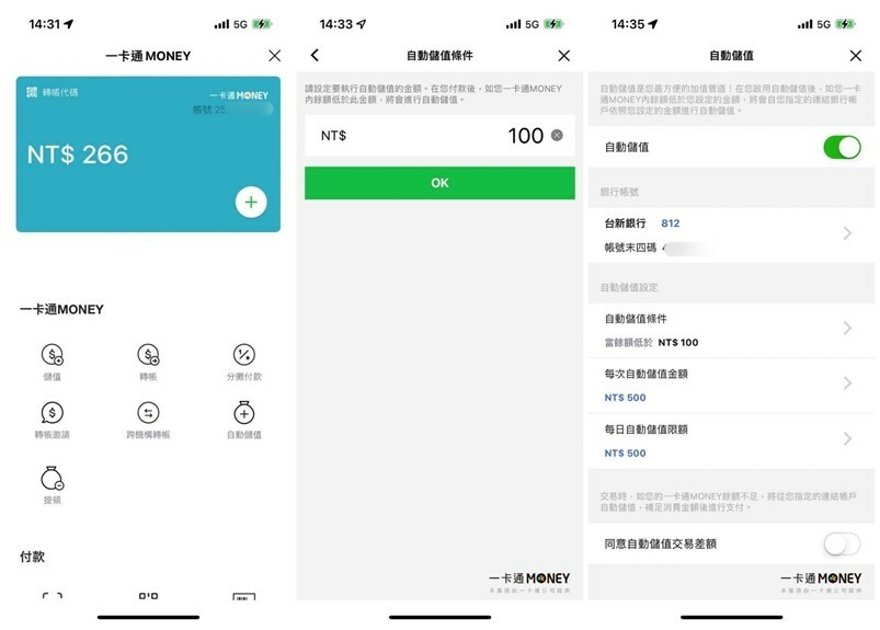 完成連結之後就可以透過Line中的一卡通Money儲值、設定自動儲值,讓使用更加方便!