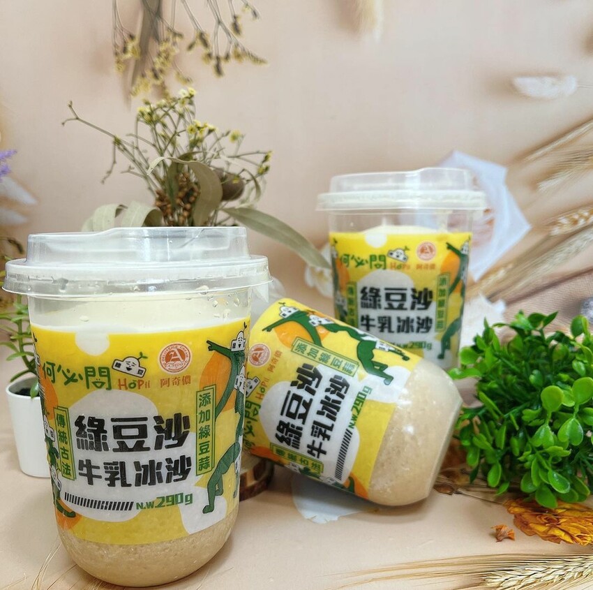 使用台灣在地綠豆加入綠豆蒜、粉條製作,最後蓋上一層香甜的奶蓋