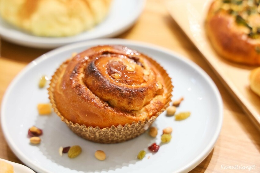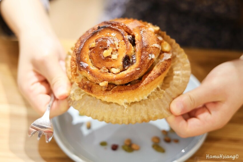 上桌前也有幫我們回烤~與常見的肉桂捲不同的是它的內餡多了很多雜糧與果乾耶!