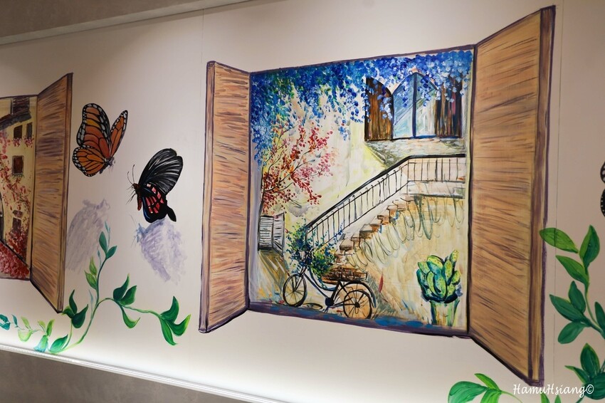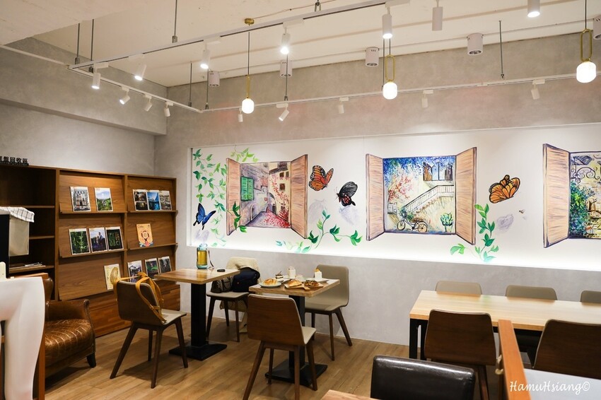 除了戶外座位區外後站店還有二樓室內用餐區,周圍有窗台壁畫很愜意